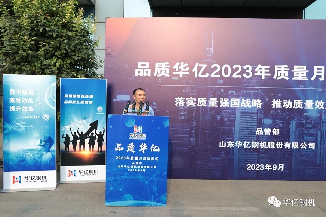 活動伊始,品管部主管侯端坤傳達(dá)了《2023山東華億鋼機(jī)“質(zhì)量月”活動方案》的通知和文件精神,明確了活動期間的各項工作目標(biāo)和要求,并號召全體職工積極參與到“質(zhì)量月”活動中去。牢固樹立習(xí)近平總書記強(qiáng)調(diào)的“視質(zhì)量為生命,以高質(zhì)量為追求”的意識,切實做到有備無患,把質(zhì)量意識牢記心中。