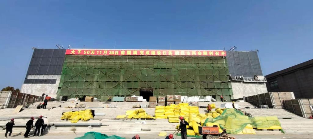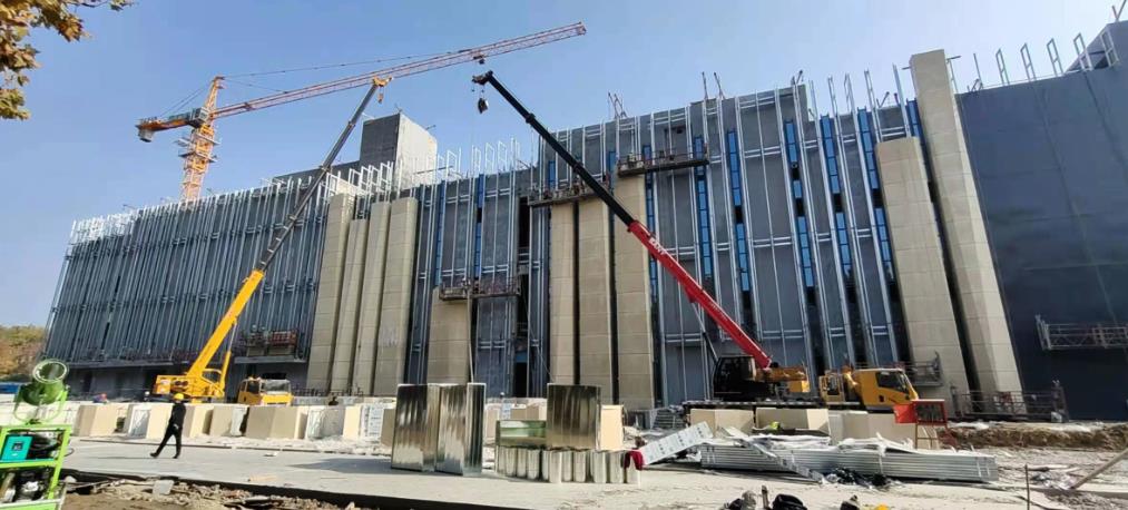 該項目為濟寧重點工程,外裝飾裝修部分共計19200平方米,造型新穎,工藝復(fù)雜,外裝飾部分為背栓式石材、干掛式混凝土藝術(shù)板,兩種新材料均在濟寧地區(qū)首用;在工期緊、施工難度大的情況下,僅用50天便完成了施工內(nèi)容。