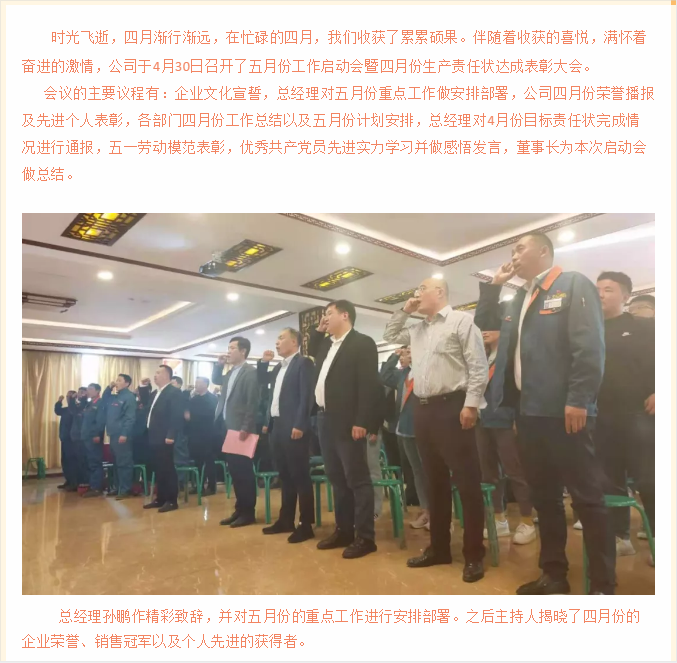 公司五月份工作啟動會暨四月份生產(chǎn)責(zé)任狀達(dá)成表彰大會順利召開