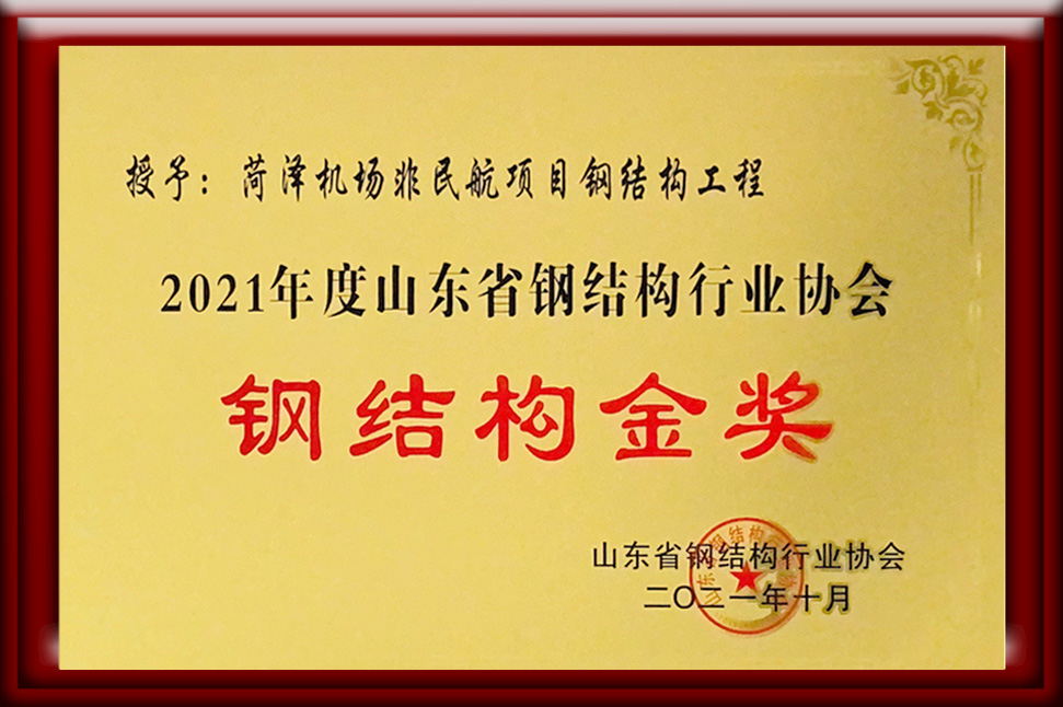 榮譽(yù)見證實(shí)力,百煉方能成鋼。公司承建的長(zhǎng)治市北環(huán)大跨度公路鋼橋和菏澤機(jī)場(chǎng)非民航項(xiàng)目鋼結(jié)構(gòu)工程兩個(gè)項(xiàng)目榮獲“山東省鋼結(jié)構(gòu)金獎(jiǎng)”榮譽(yù)稱號(hào),同時(shí),孔濤、李國棟、欒輝也分別被授予“優(yōu)秀項(xiàng)目經(jīng)理”榮譽(yù)稱號(hào)。