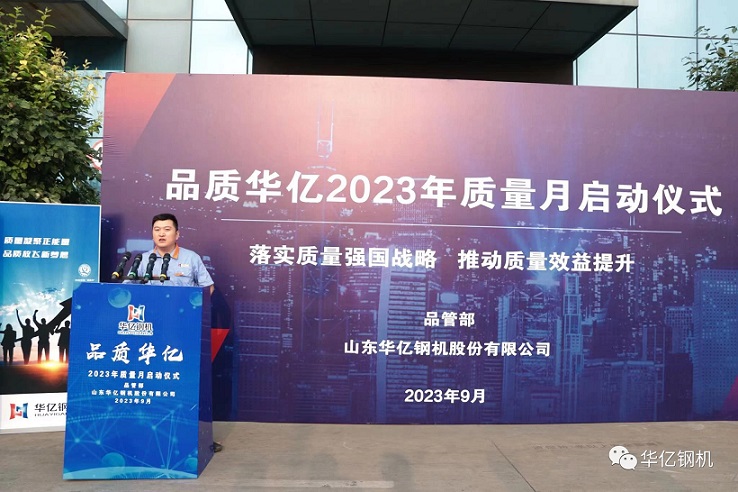 活動伊始,品管部主管侯端坤傳達(dá)了《2023山東華億鋼機(jī)“質(zhì)量月”活動方案》的通知和文件精神,明確了活動期間的各項工作目標(biāo)和要求,并號召全體職工積極參與到“質(zhì)量月”活動中去。牢固樹立習(xí)近平總書記強(qiáng)調(diào)的“視質(zhì)量為生命,以高質(zhì)量為追求”的意識,切實做到有備無患,把質(zhì)量意識牢記心中。