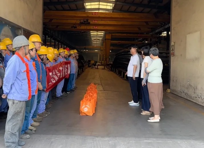 慰問組一行深入公司鋼結(jié)構(gòu)生產(chǎn)車間,將裝有防暑物資的“清涼禮包”遞到職工手中,并詳細(xì)了解他們的工作強(qiáng)度、防暑措施落實(shí)情況及生活需求,叮囑大家注意勞逸結(jié)合,做好防暑降溫。